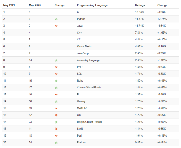 2021年5月份TIOBE编程语言排行榜(TIOBE编程语言排行榜是编程语言流行趋势的一个指标,每月更新,根据各方数据整合反映出编程语言的热门程度)已经发布,北京IT培训的老师第一时间为大家整理,并对榜单变化进行分析,希望能够有效的帮助到大家,最后预祝大家在编程学习的道路上越走越好。