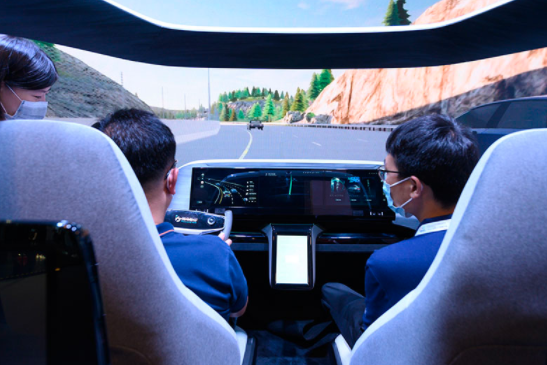 7月7日,世界人工智能大会体验日,观众体验智能座舱。
