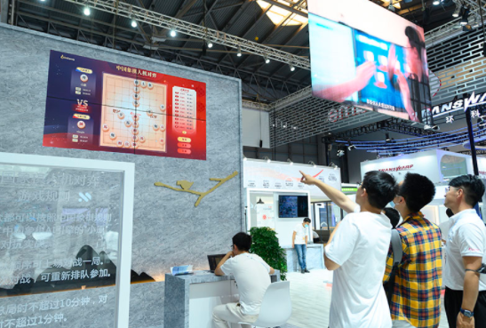 7月7日,世界人工智能大会体验日,观众观看中国象棋人机对战比赛。
