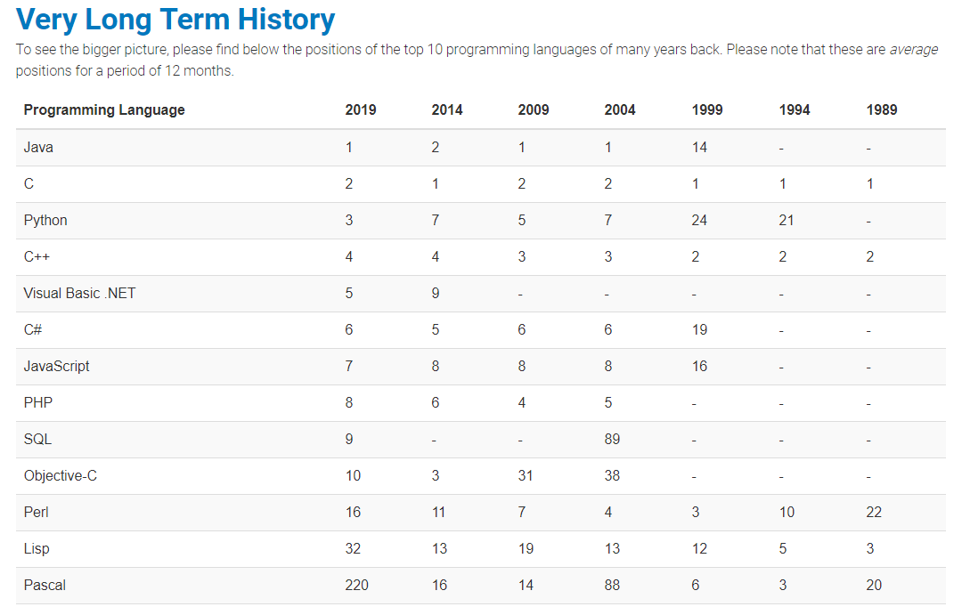 即,这种编程语言,各种轮子齐全,各大公司支持力度很高,典型应用非常多,那我觉得看看编程语言排行榜,取前几位就好。