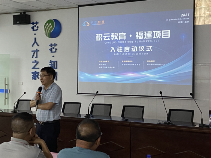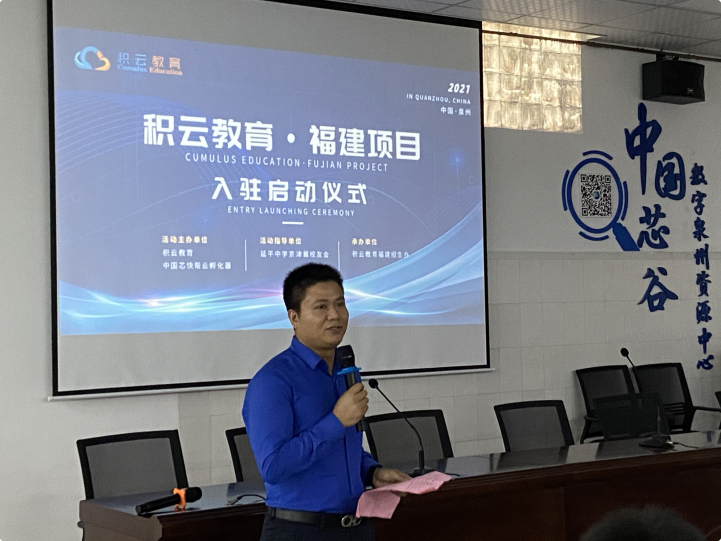 2021年6月28日,积云教育入驻福建启动仪式在中国芯快帮云孵化器与延平中学京津冀校友会的支持下,由福建积云教育招生办正式在泉州芯谷南安分园区中国芯快帮云孵化器二楼会议室圆满举办成功。