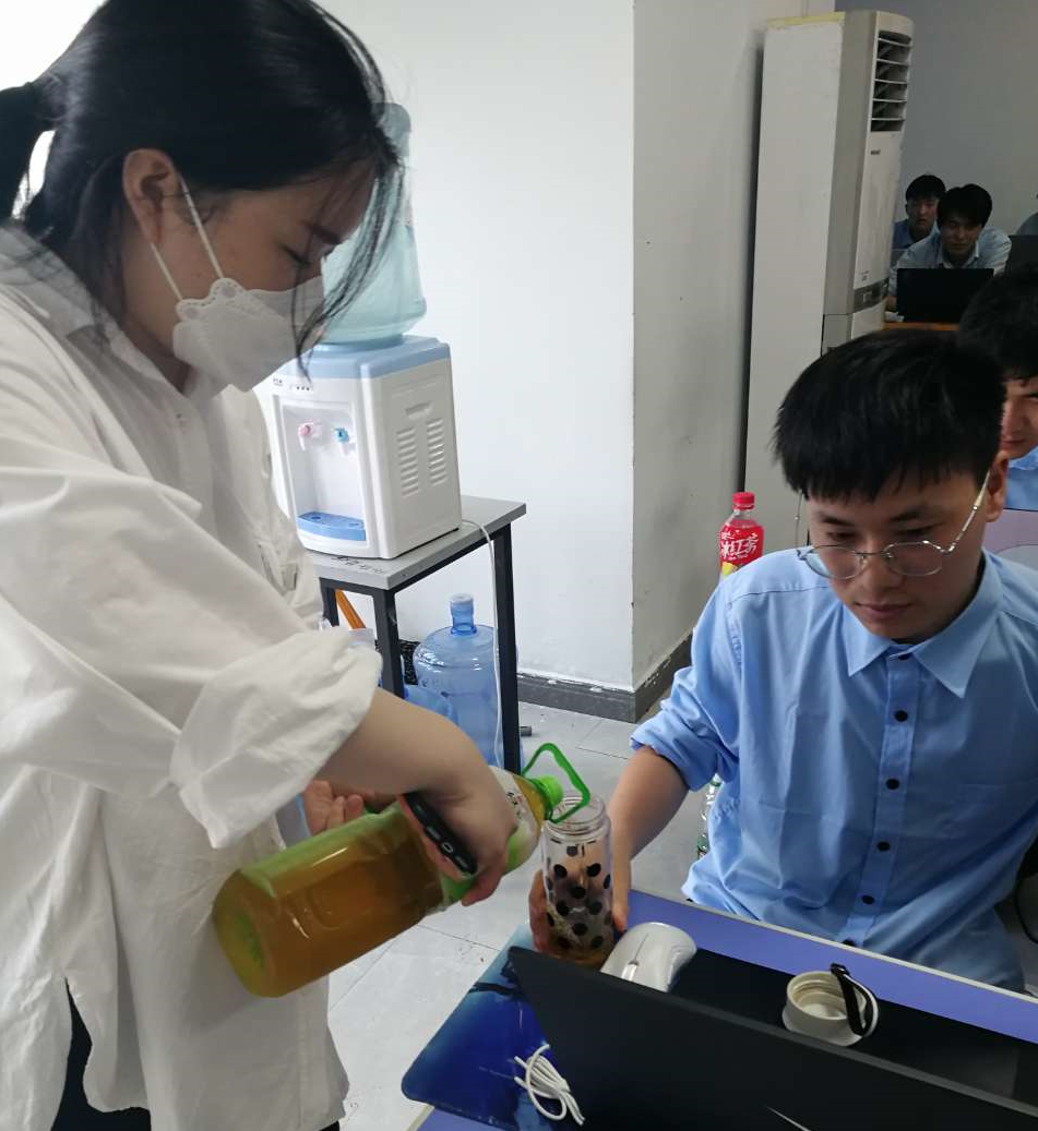天炎地热,人心浮躁,大数据方向团队为学生带来冰凉的饮料,安抚燥热的心,给学生带来凉爽,增强对学校的归属感,关爱学生身心,师生同心,共抗炎热。