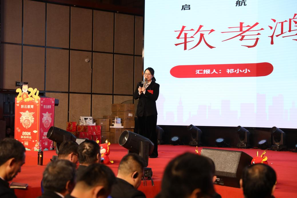 大学生事业部,是积云教育集团2023年成立的新生战略部门,秉持“坚定信念、敢闯新路、勇于胜利”的井冈山精神,助力积云教育集团进一步壮大发展。本次年会,大学生事业部总经理王晓晓从“教学服务、网络营销、未来规划”三方面做了专题汇报。首先,在教学服务工作中,大学生事业部在23年9月首期开班以来,围绕“招生入学、新生服务、团队建设”展开核心工作,搭建超实力的教学团队,通过为学员提供温暖贴心的服务体验和多维度的教学保障,助力高薪就业;其次,在2024新的一年里,大学生事业部将以客户价值为中心,整合优质网络资源,深耕内容,重视体验,立足中原,辐射全国,为更多渴望改变命运的学子提供优质、靠谱、前沿的课程产品。