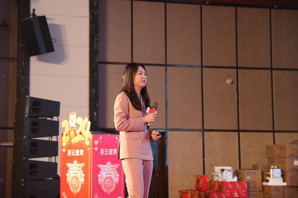守正出奇强赋能,精益求精练内功。本次年会上,积云教育新媒体部裴佳总监从“品牌建设、守正出奇、规范招生”三方面进行工作汇报。2023年,集团新媒体部秉持“品牌至上、强势赋能”的宗旨,在网络环境优化、线上品牌规范、新媒体矩阵运营、品牌专区建设、PR稿件宣发、年度奖项荣誉等方面均取得扎实战绩。2024年集团新媒体部将围绕“守住正&以奇胜”的策略展开工作:持续优化积云教育网络端品牌形象、策划创意品牌活动、打造短视频内容新高地、精细化运营私域流量、建设2C内容中台,以品牌建设持续性赋能集团各业务线长足发展;最后,裴总提到:积云教育的品牌建设离不开所有积云人的共同努力,希望大家能够知行合一,更多更好地传播积云口碑!
