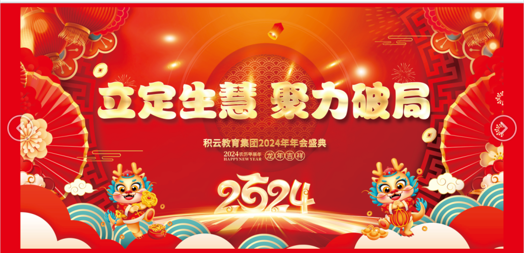 过去一年,积云教育向内扎根,向外生长,探索求新,战功赫赫,收获“中华职业教育社-会员单位”、“腾讯教育-2023年度综合影响力标杆教育集团”和“腾讯教育-2023年度口碑影响力职业教育品牌”等多项殊荣。玉兔辞旧岁,金龙迎春来,2024年积云教育定将在别校的坚强领导和全体积云人的共同努力下,立定生慧,聚力破局,最终发展成为一个知名的、受人尊敬的、敬仰的、百年的教育集团。